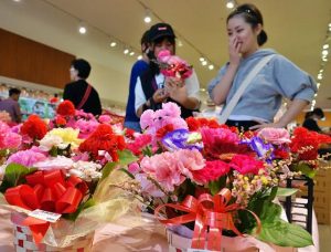 「心を込めてありがとう」-。きょう12日は「母の日」。常に愛情を持って接してくれるお母さんに、日ごろの感謝の気持ちを届ける日だ。「母の日」を前にした11日、市内の大型スーパーやフラワーショップでは、プレゼント用のカーネーションや盛り花が並び、訪れた人たちは気に入った商品を買い求めていた。