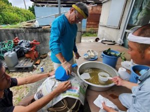 【多良間】多良間島の伝統行事「スツウプナカ」が28日、村内4カ所の祭場で執り行われる。23日にはウイヤーのブシャ座でナンカミス(七日神酒)造りが始まるなど、当日に向けて準備が進んでいる。28日深夜の「暁の願(にが)い」から始まり、3日間にわたり実施される。