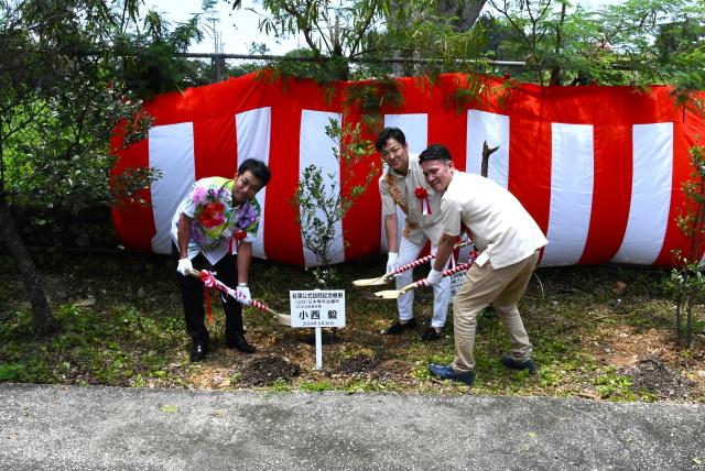宮古島で開催された日本青年会議所(JC)の正副会頭会議のために来島した同所の小西毅会頭らは31日、宮古JC会館で会議開催、宮古島公式訪問を記念して植樹を行った。市役所を訪問し、嘉数登副市長と協力関係などについて意見を交わした。JCの正副会頭会議が宮古島で開かれたのは初めて。会議では、さまざまな事業展開や活動方針などを話し合ったという。全国各地のJCから約100人の会員が来島。役員の他に各委員らの会議も開かれた。