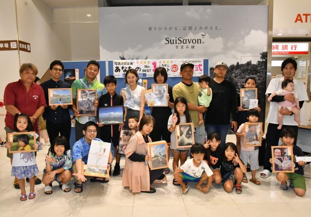 6月1日の「写真の日」にちなみ開催された宮古毎日新聞社主催第4回あなたのいちばんフォトコンテストの表彰式が2日、特別協賛したサンエー宮古島シティで行われ、グランプリに輝いた湧川農さんら12点の入賞者に賞状や副賞などが贈られた 今回の全応募作品は7日まで、サンエー宮古島シティで展示される。