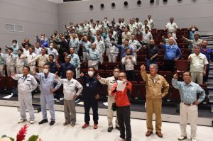 2024年度宮古地区安全大会(主催・県労働基準協会宮古支部ほか)が4日、市未来創造センターで行われた。事業主や労働者など多数が参加し、指差呼称で全国安全週間のスローガンを確認。「安全活動に取り組み『安全第一』を新たな時代に継承していく」などとする大会宣言を採択した。