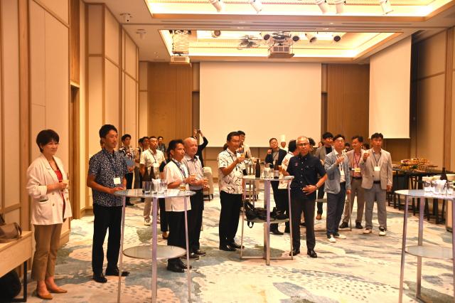 下地島空港活性化協議会(会長・座喜味一幸市長)は5月29日からスタートした韓国仁川(インチョン)線の就航に伴い、航空会社ジンエアーの関係者らを招いた「宮古島FAMツアー」を企画した。12日夜、市内のホテルで開かれたウエルカムパーティーに参加した同社のイ・ミョンデ営業本部長は「11月以降も運航を続け、さらに釜山(プサン)線も検討している」と意欲を見せ、今後の展望を語った。
