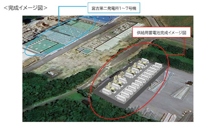 【那覇支社】沖縄電力は17日、2025年5月に同社初となる供給用蓄電池を宮古島市平良荷川取所在の宮古第二発電所に隣接して設置することを明らかにした。これまで同社が電気を供給してきたディーゼル発電機に加え、再生可能エネルギーを蓄電して、主に夜間のピーク時に電気を提供する。