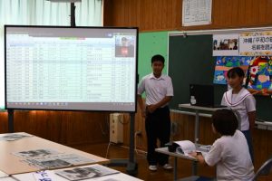 沖縄戦の犠牲者を追悼する「慰霊の日」を前に、上野中学校(砂川泰範校長)の全生徒104人は20日、同校で平和祈念公園(糸満市)の「平和の礎(いしじ)」に刻銘されている宮古関係者の名前を亡くなった当時の年齢とともに読み上げた。生徒たちは戦没者に思いをはせながら、平和の尊さを発信した。
