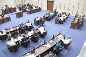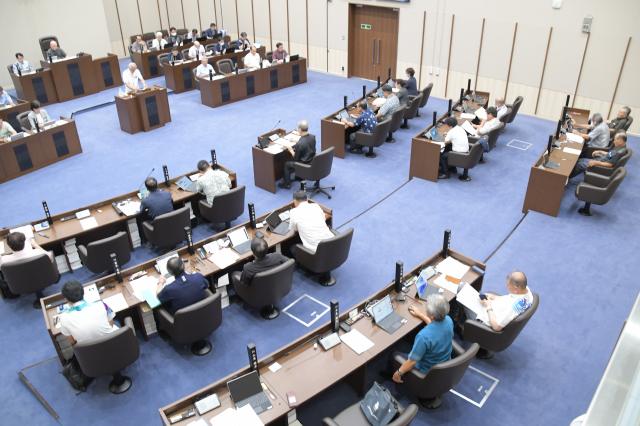 市が旧上野庁舎に市地産地消振興センターを設置することに伴い、上野出張所を上野公民館に移すための条例の一部改正案を撤回したことについて、座喜味一幸市長は24日、開会中の市議会一般質問で謝罪し、「今後は地域の声を吸い上げて、反映させていく市の仕組み作りをしていく」と述べた。山里雅彦氏への答弁。