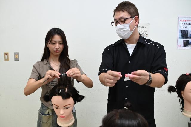 美容系専門学校の「琉美インターナショナルビューティカレッジ」(辻上弘子校長)は29日、市内の中高生を対象にしたオープンキャンパスを市働く女性の家(ゆいみなぁ)で開催した。参加者は同校の特色などの説明を受けたほかパーマ巻きの技術を習った。