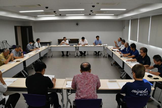 市干ばつ対策会議(会長・石川博幸農林水産部長)が2日、市役所で開かれ、サトウキビのかん水補助事業の実施要項を決めた。5日から受け付けを開始する。かん水量は1農家当たり20アール(10トンタンク6台分)を1巡目とし、2巡目は降水量を基に判断する。かん水費用はトラック1台当たり4500円で、このうち農家負担は2000円となる。