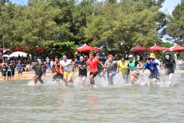 下地与那覇湾(通称サニツ浜)の広大な干潟を舞台に、水中駅伝や綱引きなどのユニークな競技を行う「第30回サニツ浜カーニバル」(主催・東急ホテル&リゾーツ、宮古島来間リゾートシーウッドホテル)が21日に行われ、大勢の市民らが参加して5年ぶりに復活した干潟の大イベントを楽しんだ。