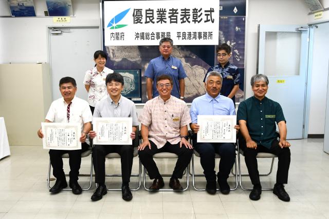 内閣府沖縄総合事務局平良港湾事務所(與儀成也所長)は31日、優良業者等表彰式を同所で開き、優秀工事技術者部門で共和産業監理技術者の赤崎幸太郎さんらを表彰した。同所発注の工事・業務で顕著な功績があり、他の模範になるとして高く評価した。