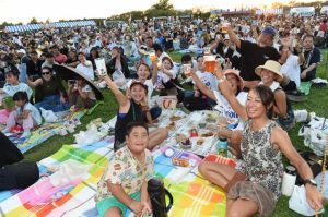 真夏の恒例イベント「オリオンビアフェスト2024in宮古島」(主催・オリオンビール)が3日、パイナガマ海空すこやか公園を会場に開催された。市民や観光客ら大勢が来場し、にぎわう会場ではビール片手に「乾杯」と、笑顔でビールを飲み干す姿が見られた。特設ステージでは多くのミュージシャンのライブが行われた。