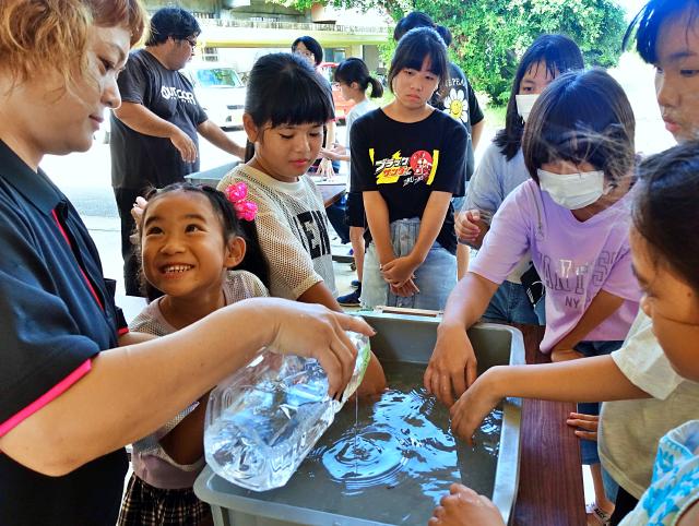市教育委員会の「苧麻で紙漉(す)き・ランプづくり」が3日、市歴史文化資料館で行われた。参加した小学校3~6年生9人が、苧麻が宮古上布の糸の原料となることなどを学びながら、苧麻を使った紙すきを体験し、ランプづくりにも挑戦した。