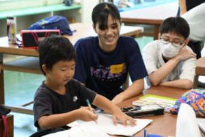 宮古青少年の家(島尻政俊所長)は3日、小学生の夏休みの宿題をサポートする「夏休み宿題おたすけし隊」を開催した。児童たちの宿題をボランティアで参加した高校生たちが指導した。4日まで行われる。