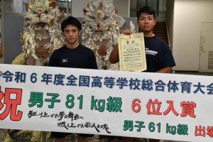 全国高校総合体育大会(インターハイ)のウエイトリフティング競技が2~5日、長崎県の諫早市小野体育館で開催された。男子81㌔級では安良城龍虎(りゅうこ、宮高3年)がトータル244㌔の記録で6位に入賞。同61㌔級の與那覇颯太(同2年)はトータル181㌔の21位だった。