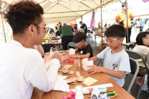 夏休み恒例の第35回親子ふれあい手作り広場(主催・宮古毎日新聞社、協賛・メイクマン)が4日、メイクマン宮古店で行われた。午前と午後に分かれ、計68組の親子が参加して工作に挑戦した。参加者らは親子で協力しながら作業に取り組み、自分だけの手作り作品を完成させた。