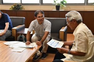 沖縄総合事務局運輸部の星明彦部長らが14日、市役所に座喜味一幸市長を訪ね、一般ドライバーが自家用車を使って有償で乗客を運ぶ「日本版ライドシェア」の導入に向けた支援策を紹介した。星部長は「互いにウィンウィンになるよう議論を活性化していただきたい」と求めた。座喜味市長は「タクシー協会と課題を議論したい。個人的には良い事業だと思っている」と前向きな姿勢を示した。