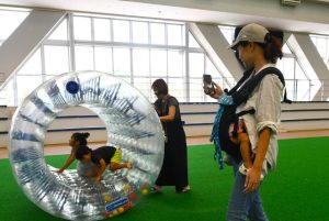 JTAドーム宮古島で17日、エアーマットなどの遊具を無料開放する親子ふれあいDayが始まった。22日まで(20日は定休日)。会場には家族連れや友達同士などが訪れ、ストラックアウトやフラフープ、トランポリンなどの遊具を楽しんだ。