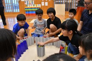 「建築のしくみワークショップ」(主催・県建築士会宮古支部)が19日、ひらら児童館で開かれた。約20人の子どもたちが参加し、ベニヤ板とクラフト紙を使った建築物の製作に挑戦。強度を高めるためにさまざまな工夫を凝らすなど建築の楽しさを実感した。
