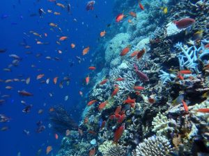 宮古島の貴重な観光資源であるサンゴの白化現象が8月に入り目立ち始めている。今年は梅雨明け以降、暑い日が続き海水温が例年より約2度高く、台風の接近も少ないことが影響しているとみられている。観光客に人気の八重干瀬エリアでも白化が大きく進行している。調査を行った市教育委員会生涯学習振興課主任主事の島田剛さんは「今後も水温が上昇しサンゴのストレス状態が続くと死滅の可能性もある」と指摘している。