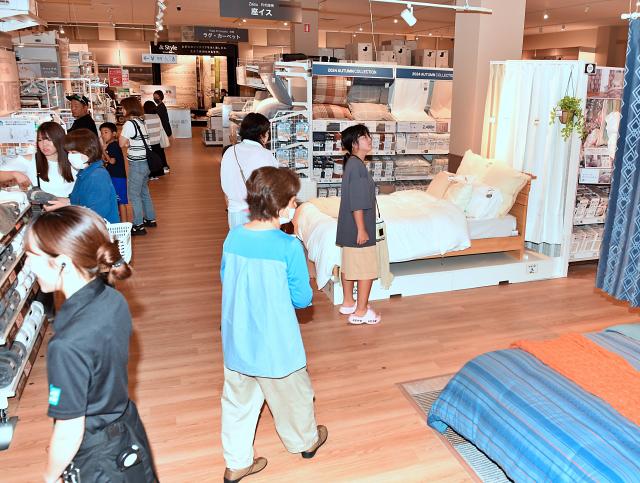 家具やインテリア用品の「ニトリ宮古島店」(橋本駿平店長)が23日、平良西里にオープンした。店舗は大型家具から家電、インテリア用品など多数の商品を取りそろえており、初日は開店前から多くの市民が駆け付け、長蛇の列を成し、目当ての商品を買い求めていた。営業時間は午前10時~午後8時まで。9月2日まではオープン特典として対象の商品のポイントが5倍となるキャンペーンが行われている。