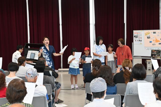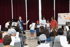宮古島出身の女性作曲家、金井喜久子氏の楽曲について学び、歌うワークショップ(主催・金井喜久子プロジェクト実行委員会)が25日、市未来創造センターで開催された。金井氏が遺した名曲を城辺出身のオペラ歌手、黒島舞季子さんらが指導し参加者らと共に歌い楽しんだ。10月には金井氏の生誕を記念したイベントが開催される。