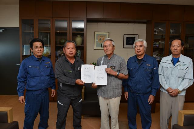 ハーベスター運営協議会(与那覇武会長)、県さとうきび生産法人連絡協議会宮古支部(宮國明雄支部長)、県農業機械士協議会宮古支部(川満敏支部長)、宮古地区さとうきび管理組合(前里孝清組合長)の4団体は28日、労働者の住居不足の解消に向けて廃校になった学校施設を宿泊施設として活用する「宿泊施設の確保」を座喜味一幸市長に要請した。