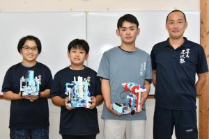 小中学生のための国際ロボット競技会「ユニバーサルロボティクスチャレンジ2024」ロボット競技部門で、尾沢塾で学ぶ平良琉希さん(北小6年)、嵩原鈴さん(平良第一小6年)のチームおざわくん、根間陽吾さん(平良中3年、チームhyu)が国内予選を通過し、9月22日に大阪で行われる世界大会への出場を決めた。同塾で31日に報告会が行われ、3人が上位入賞に意欲を示した。