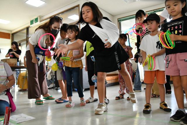 地盛まつり(主催・同実行委員会)が14日、地盛公民館で開かれた。地域住民が多数参加し、ステージで繰り広げられる多彩な余興や輪投げ、射的などのゲームを楽しんだ。