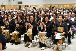 「敬老の日」の16日、市主催の敬老会が伊良部公民館で開かれた。午前は佐良浜地区(北区)、午後は伊良部地区(南区)の70歳以上の高齢者合わせて1611人を招待し、地域を挙げて盛大に祝福した。座喜味一幸市長をはじめ、多数の来賓が出席。敬老会入りした新70歳の人たちは司会から名前を呼ばれ、一人一人紹介された。子どもたちや地元の人たちが余興を披露し、高齢者のさらなる長寿を願った。