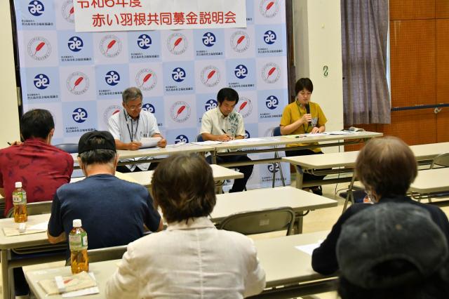 市社会福祉協議会(野原勝会長)は18日、平良地区の行政連絡員57人を対象にした赤い羽根共同募金の戸別募金説明会を平良老人福祉センターで行った。市社協の砂川信雄事務局長は「近年、一人暮らし高齢者世帯や困窮世帯の増加で戸別募金活動は厳しくなっているが、地域福祉活動に向けた目標金額の達成に理解と協力をお願いしたい」と呼び掛けた。募金運動期間は10月1日から来年3月31日まで。