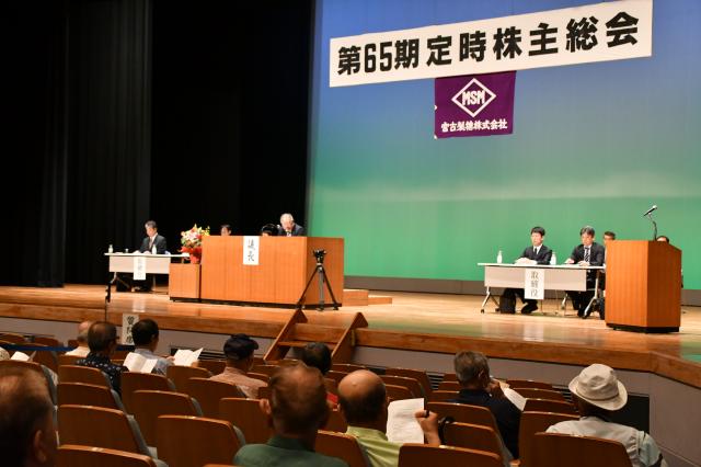 宮古製糖(渡久山和男社長)の第65期定時株主総会が20日、マティダ市民劇場であった。当期(2023年7月1日~24年6月30日)の売上高は前期比9800万円増の40億7600万円で、純利益は4億2200万円の赤字となった。長雨などの影響で長期操業となり、赤字決算は3期連続。渡久山社長(72)が退任し、新社長に山城一成常務(46)が就任した。