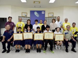 【多良間】第74回社会を明るくする運動作文コンテストの表彰式が1日、村役場で行われた。優秀賞を受賞した多良間小の大城帆菜さん(6年)ほか、中学生の部で入賞した4人に賞状が贈られた。
