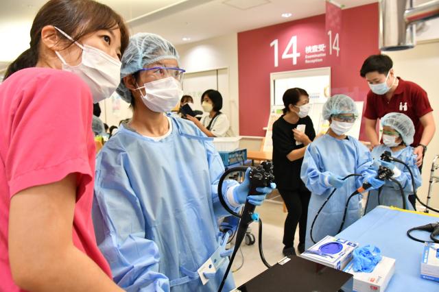 県立宮古病院(川満博昭院長)の第5回オープンホスピタルが5日、同病院1階フロアなどで行われた。開催は5年ぶり。親子連れや友人同士など約350人の市民が訪れ、電気メスを使った疑似手術や、18カ所の各ブースで、さまざまな体験を通して医療従事者との貴重な触れ合いを楽しみながら地域医療の現場で日々行われる職務やその役割について学んだ。