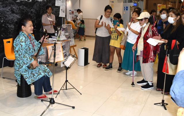 金井喜久子プロジェクト実行委員会は5日、サンエー宮古島シティで「與那城美和、金井喜久子に出会う~ミニミニライブ」と20日に行われる「金井喜久子物語~朗読と音楽調べ~in宮古島」の前売り券販売を行った。