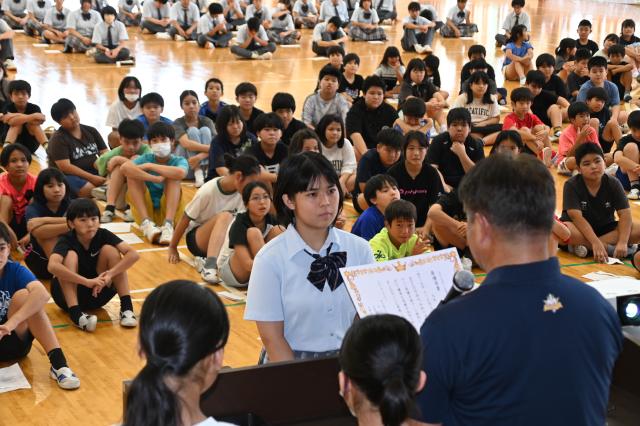 保護月間で全校集会/テーマ、ポスター、俳句の表彰も