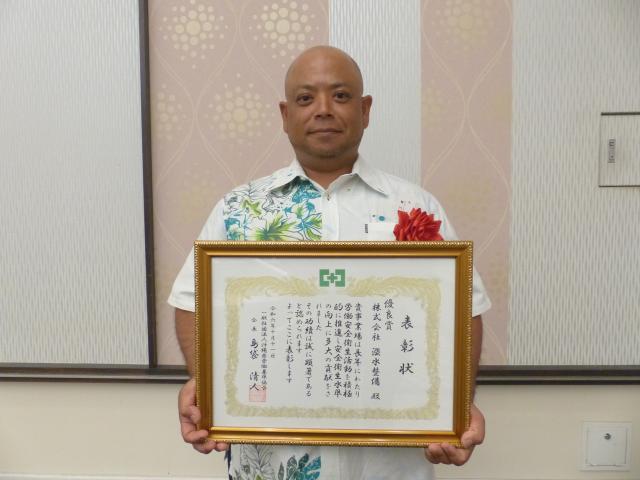 【那覇支社】健康で安心して働ける職場環境作りを目指す「2023年度県産業安全衛生大会」が11日、宜野湾市内のホテルで開催され、県労働基準協会長賞の表彰などを行った。宮古からは、同優良賞(団体の部)に漲水整備(市平良西仲宗根、平良勇樹社長)、同功労賞(個人の部)では丸博建設(市城辺比嘉、平良ヒデ社長)の平良喜輝専務取締役がそれぞれ受賞した。