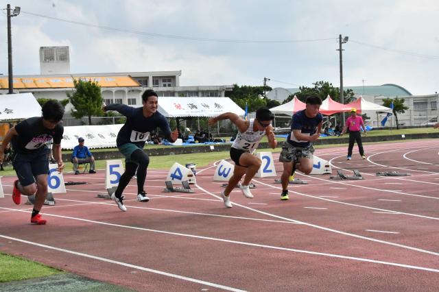 第51回宮古体育大会を締めくくる第79回全宮古陸上競技大会(主催・宮古島市スポーツ協会)が12日、市陸上競技場で開幕した。初日はトラック競技1種目とフィールド競技8種目で決勝が行われ、このうち一般男子1万㍍では上里宗治(狩俣)が36分51秒8で優勝した。