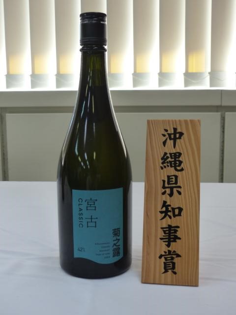 【那覇支社】2024年度泡盛鑑評会(主催・県、県国税事務所)の記者発表会見が22日、県庁で開かれ、9月に行われた品質品評会の各部門で入賞を果たした受賞酒を発表した。県内33カ所の酒造場から計58点が出品された「古酒の部」では、宮古から池間酒造(池間太郎社長)の「瑞光」が県国税事務所長賞、菊之露酒造(下地一盛社長)の「宮古Classic2024」が同賞と県知事賞を獲得した。