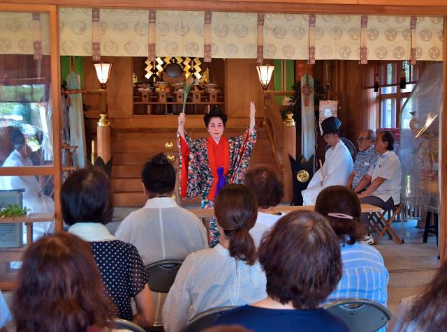 宮古神社は26日、年に1度の祭礼行事「例大祭」を執り行った。参拝者らは宮古島の繁栄と平安などを願い、神前では舞踊や歌謡などが奉納された。