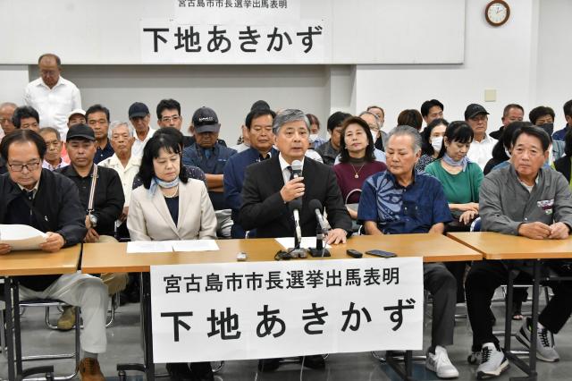 城辺福里出身で元県企画部長の下地明和氏(67)は6日、平良港ターミナルビルで会見を開き、来年1月(12日告示、19日投開票)の第6回宮古島市長選挙に出馬することを表明した。「故郷への強い思いと、これまでの経験や人的ネットワークを存分に発揮して政策、施策に取り組み、故郷宮古島市の振興発展に尽力したい」と決意を示した。