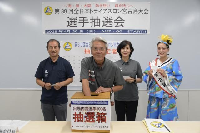 来年4月20日に開催される第39回全日本トライアスロン宮古島大会(主催・宮古島市など)の出場選手抽選会が12日、市役所で行われた。大会長の座喜味一幸市長らによって残り100人が選ばれ、全出場内定者1500人が決まった。22日にメールまたは大会公式ホームページで出場内定の通知を送付する。座喜味市長は「万全な体調で参加してほしい」と呼び掛けた。