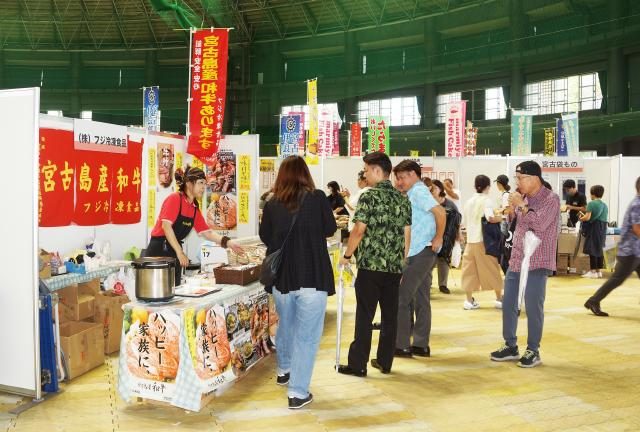 【那覇支社】宮古島市や多良間村など県内離島の産品・文化をアピールする「離島フェア2024」が15日、「離島の息吹を感じよう!特産品の祭典」をキャチフレーズに那覇市で開幕した。宮古、多良間からは約10社・団体のほか、郷友会からの出展もある。沖縄宮古民謡協会や多良間村字塩川獅子座・金丸獅子、ふしゃぬふエイサーによる芸能披露も予定されている。17日まで。