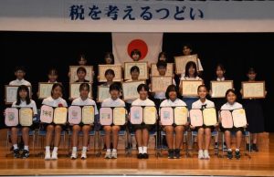 「2024年度税を考えるつどい」が20日、市未来創造センター多目的ホールで行われた。「税についての作文」の表彰などが行われ、高校生の作文では前田みぞれさん(宮高1年)が県教育長賞、中学生の作文では松川久麗杏さん(北3年)が県納税貯蓄組合連合会長賞、小学生対象の税に関する絵はがきコンクールでは大城璃和さん(南6年)が最優秀賞となる沖縄宮古法人会長賞を受賞した。
