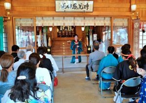 五穀豊穣(ほうじょう)を神に感謝する「新嘗祭(にいなめさい)」が23日、宮古神社(渡慶次馨宮司)で行われた。