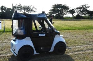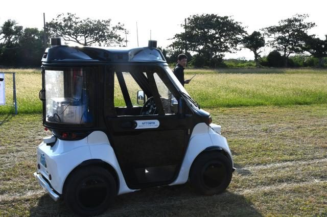 NTTデータオートモビリジェンス研究所(NTTDARC、坂本忠行社長)による自動運転マイクロEVカーの実証実験が28日、来間島で始まった。同日は、旧来間小中学校グラウンドで、同社社員が地元自治会や市職員らに実験の内容や期待される成果などを説明し、参加者に試乗を体験させた。