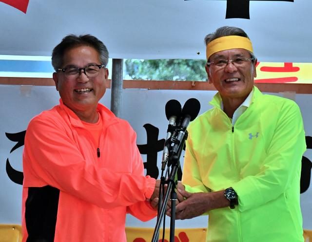 来年1月の市長選へ出馬を表明していた前県議の國仲昌二氏が7日、出馬しないことを宣言した。市長選では現職の座喜味一幸氏の支援に回り、自身は市議補欠選挙に出馬することを明言。市政与党が一本化を果たし、セット戦術でダブル当選を目指す。7日に行われた座喜味氏の後援会事務所開き前に会見を開き、「超短期決戦だが全力で走り抜けたい」と決意を述べた。与党市議団などが、市長選での予定候補者一本化に向けて協議を進めていたことに自ら歩み寄った形だ。