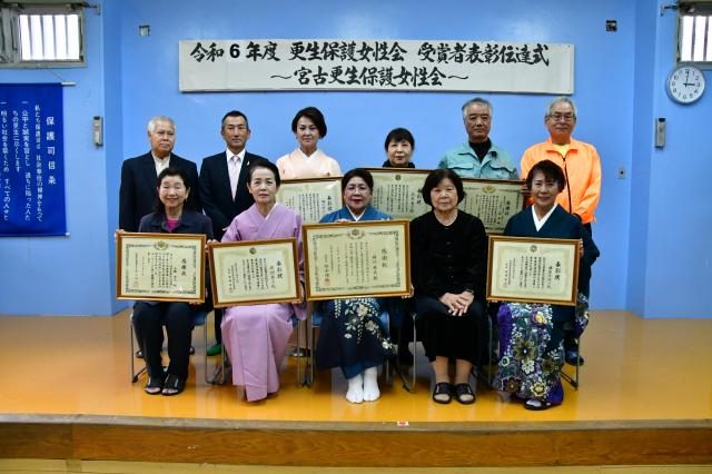 宮古更生保護女性会(新城美津枝会長)の県更生保護大会受賞者表彰伝達式が21日、更生保護サポートセンターで行われた。社会奉仕の精神を持って、更生保護活動の進展に寄与するなどした女性をたたえ表彰した。更生保護事業に理解を示し、物心両面にわたり多大な協力をしたとして2企業、1個人に感謝状が贈られた。