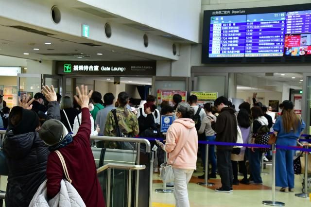 年末年始を宮古島で過ごした帰省客や観光客らによるUターンラッシュが始まった。第2のピークとなる4日、宮古空港の搭乗待合室入り口には、子や孫を見送る父母、祖父母らの姿が見られた。互いに姿が見えなくなるまで手を振り続けて別れを惜しみ、「また来てね」と再会を誓った。
