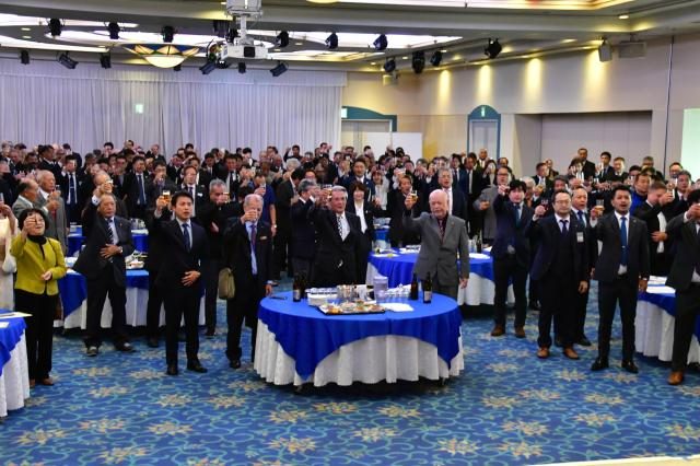2025年宮古島市新春の集いが6日、市内のホテルで開かれた。会場には行政、企業の代表らが一堂に会し、あいさつを交わしながら市の発展を誓い合った。座喜味一幸市長は「巳年は新しくよみがえり、努力した実が花開くという躍進の年である。より具体的に仕事を進め、飛躍へのチャンスをしっかりとつかみたい。今後、官民連携をお願いしたい」と語った。