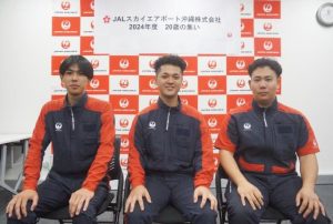 【那覇支社】宮古空港など県内八つの空港でJALグループと受託外航空社便の離発着に必要な業務を担っているJALスカイエアポート沖縄は20日、今年度に20歳を迎える社員の門出を祝う「20歳の集い」を那覇空港で開催した。宮古空港の3人も参加した。