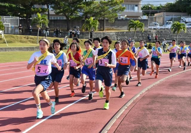 第43回全宮古小学校駅伝競走大会(主催・宮古地区小学校体育連盟)は25日、市陸上競技場を発着点とする男女10区間14㌔のコースで行われ、平一Aが10年ぶり7度目の優勝を果たした。平一Aは1区で2位発進し2区で早々とトップを奪うと、そのまま1位を守り続け、終盤で3連覇を狙う久松の猛追を1秒差で振り切った。2位久松A、3位は南Aだった。